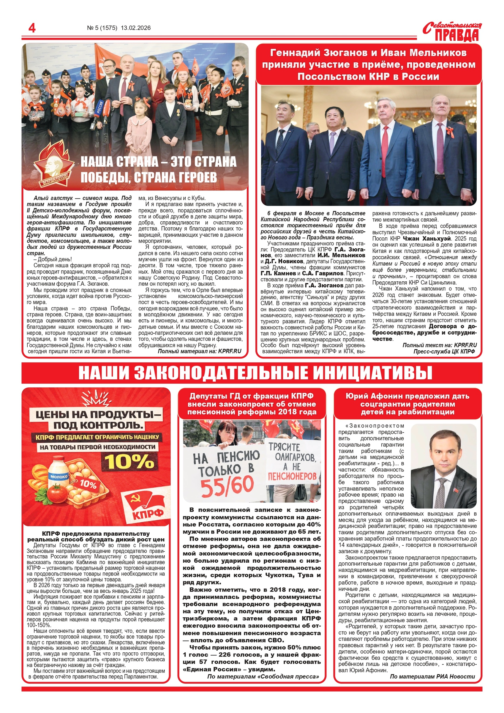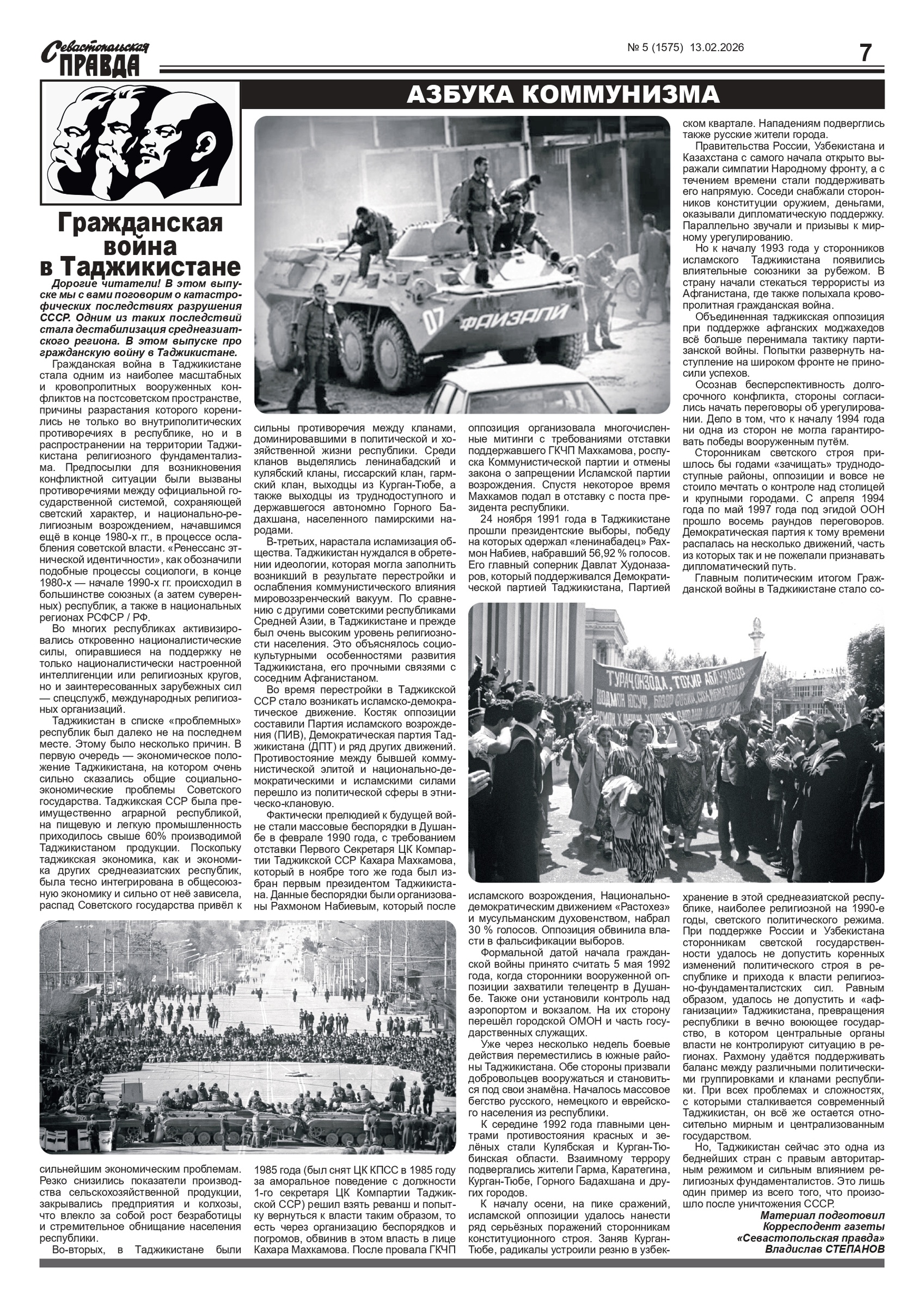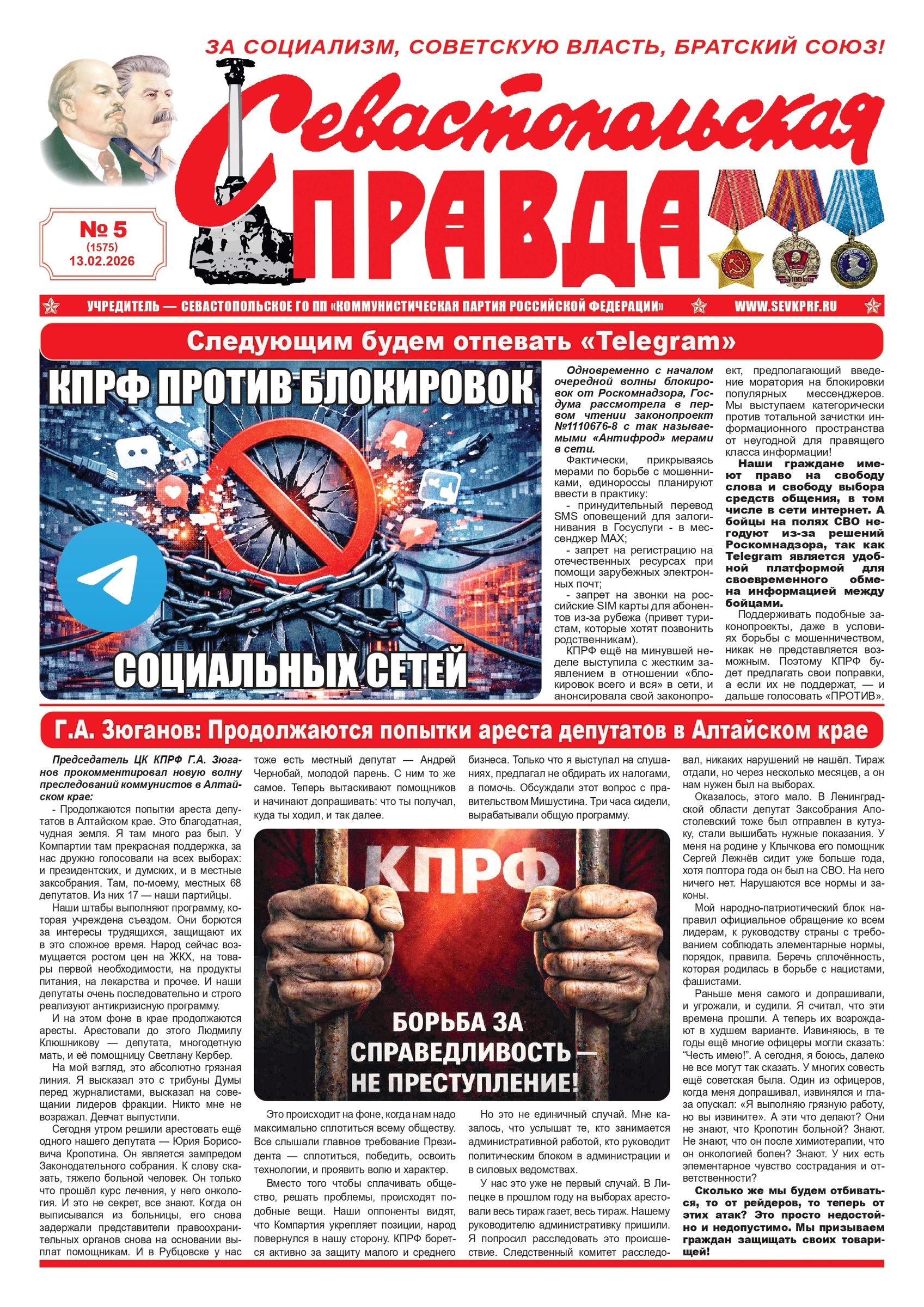 Газета “Севастопольская правда” № 5 от 13 февраля 2026 г., доступна в электронном виде