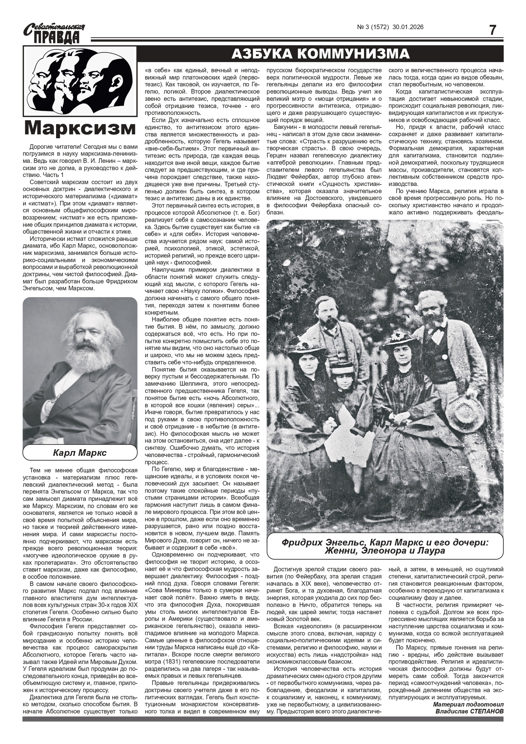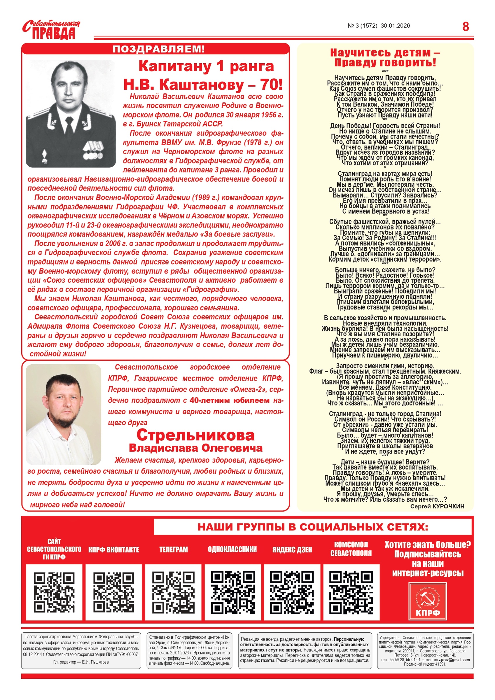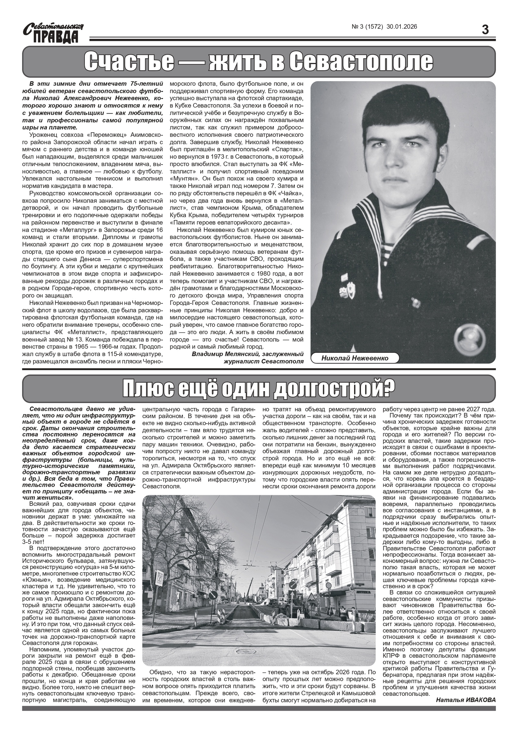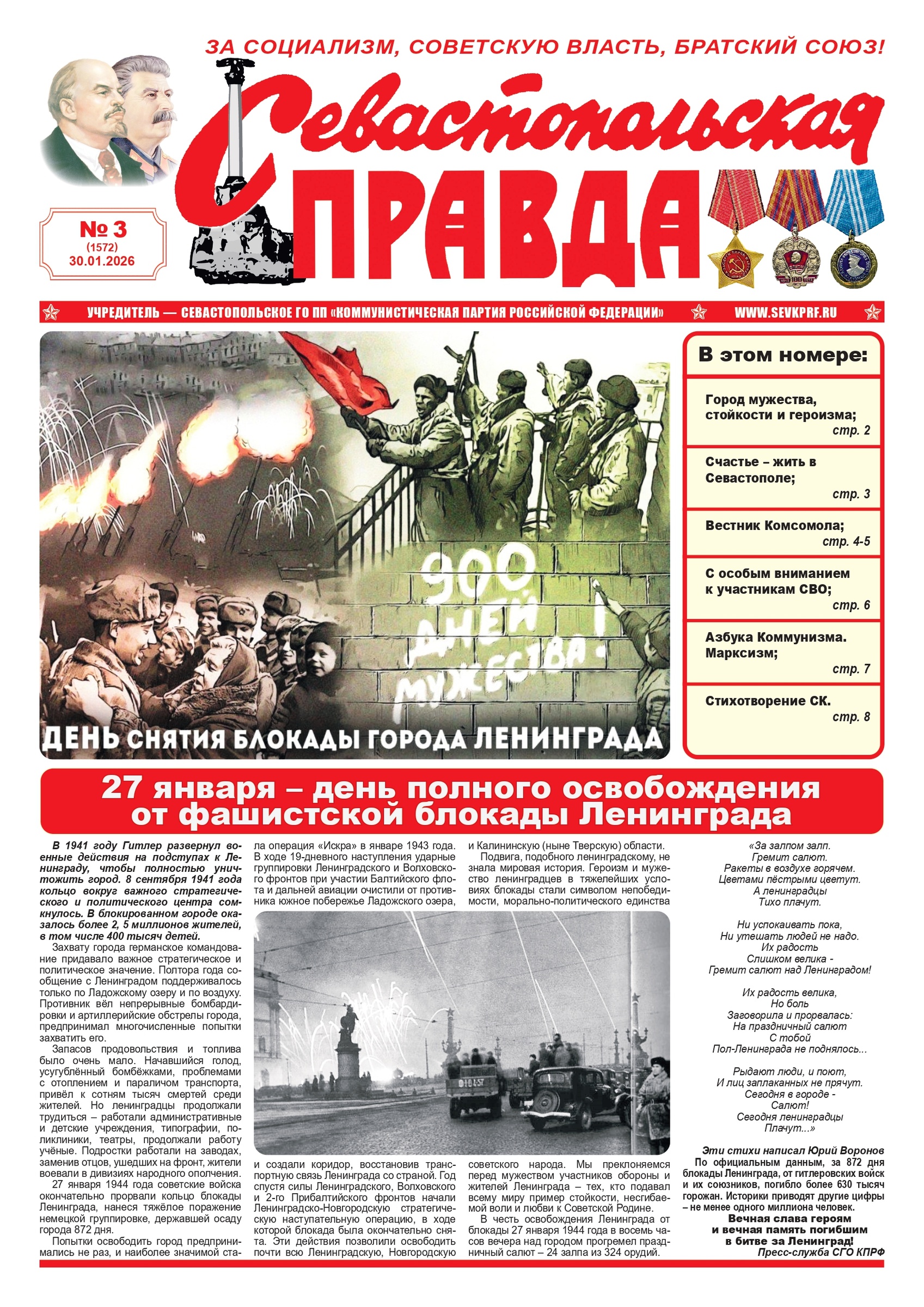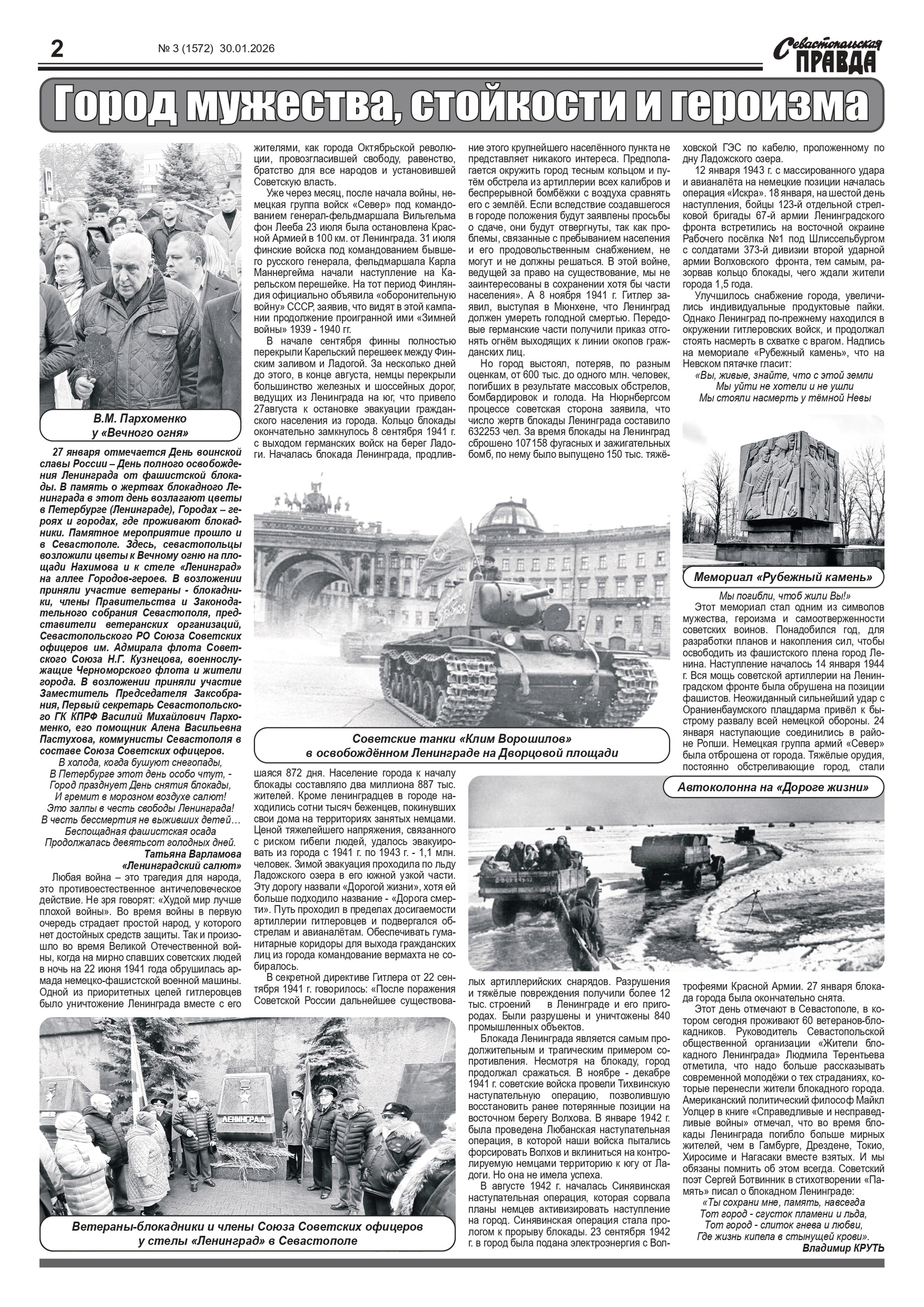 Газета “Севастопольская правда” № 3 от 30 января 2026 г., доступна в электронном виде