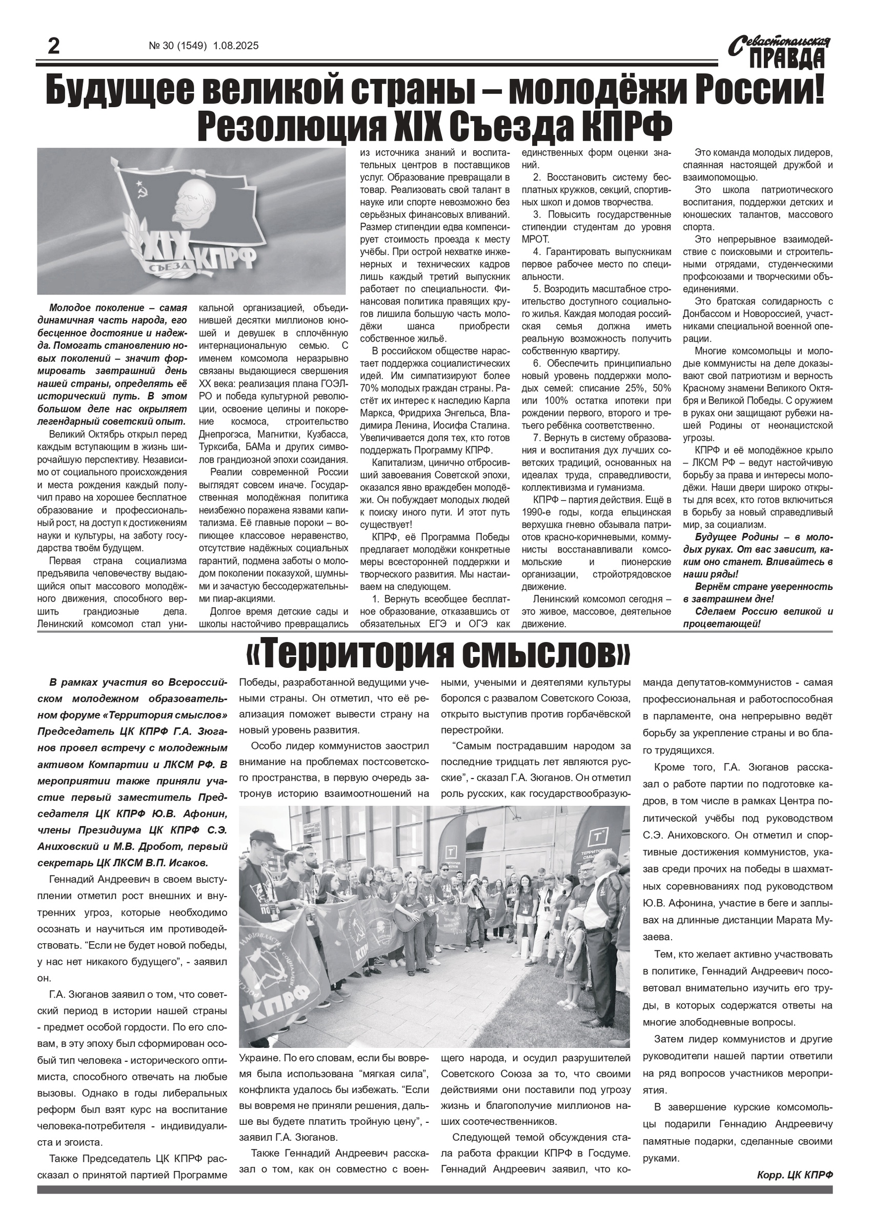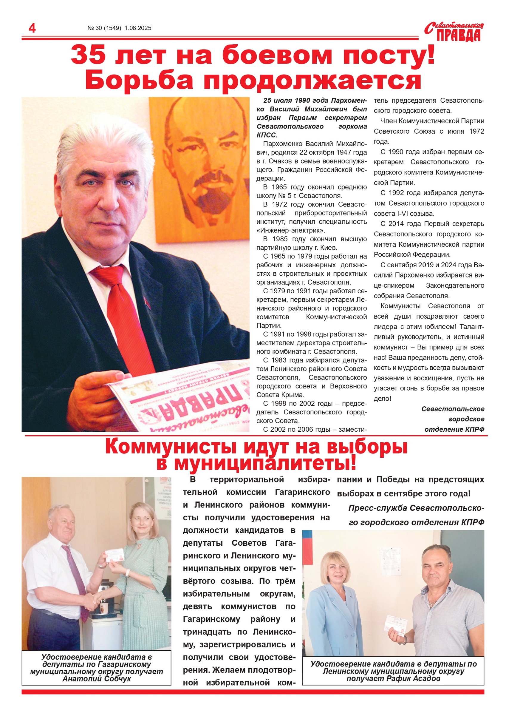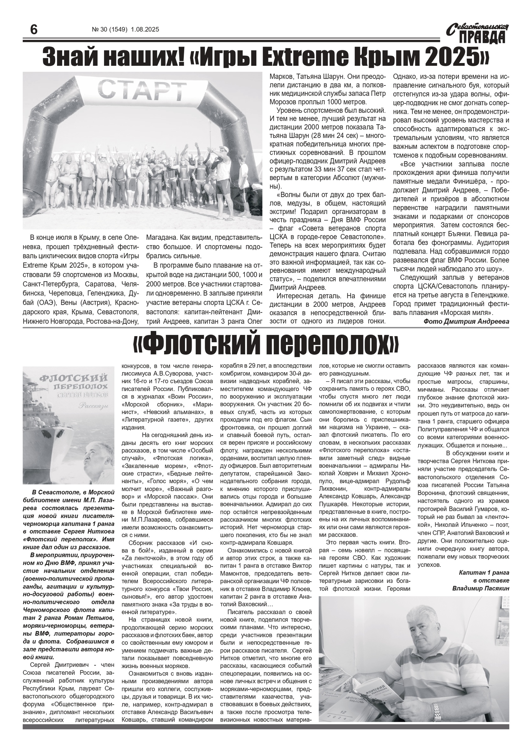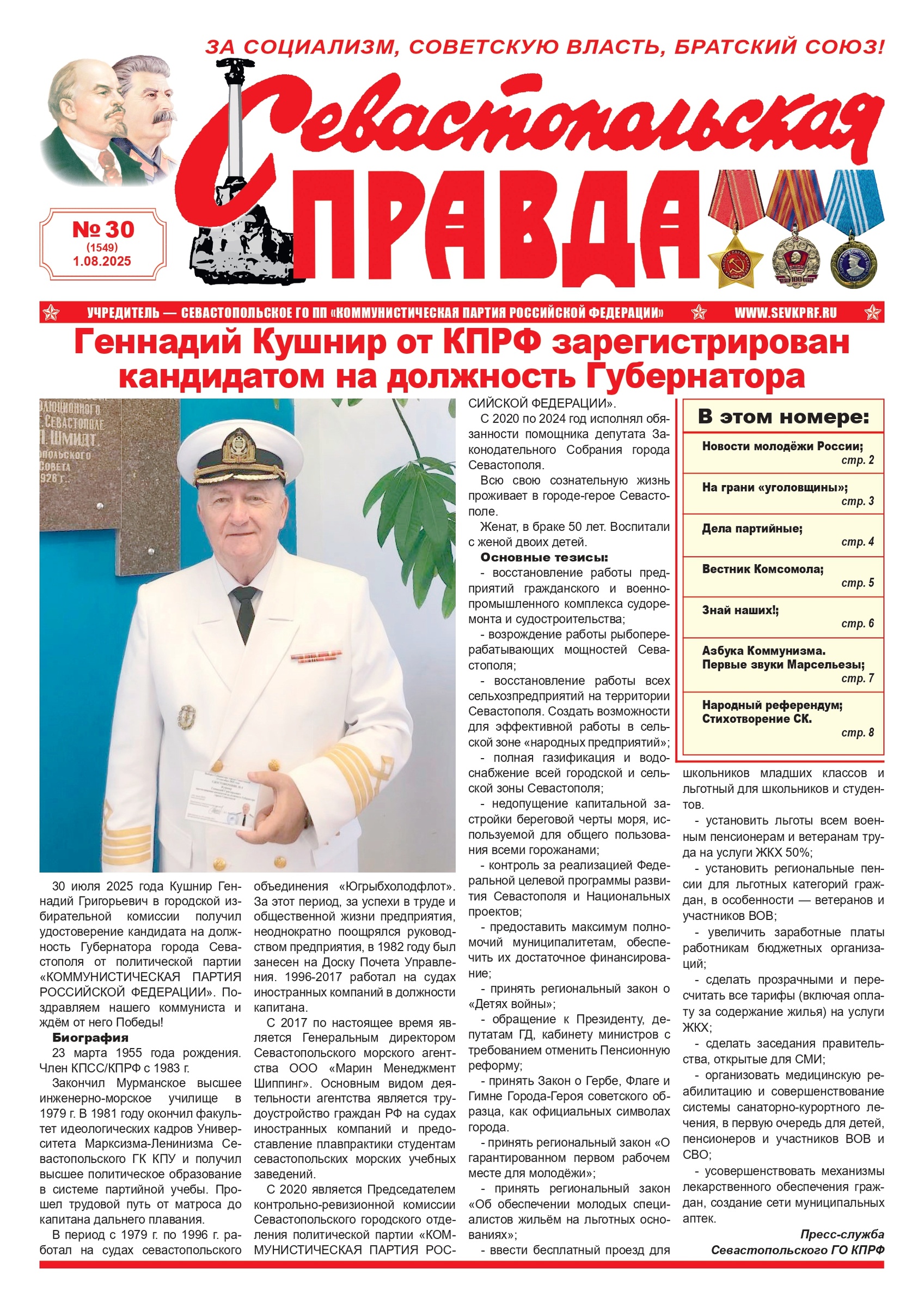 Газета “Севастопольская правда” № 30 от 1 августа 2025 г., доступна в электронном виде