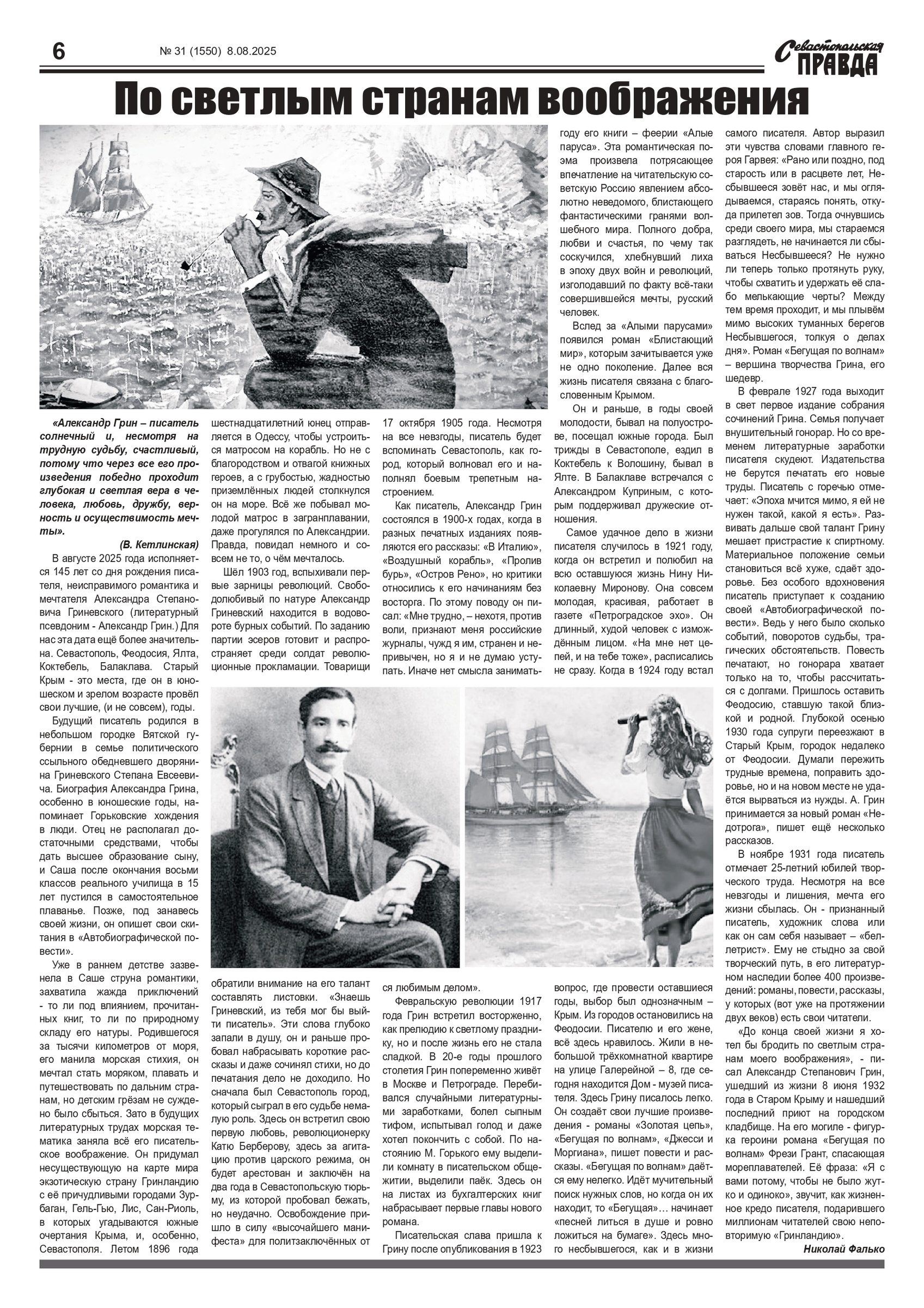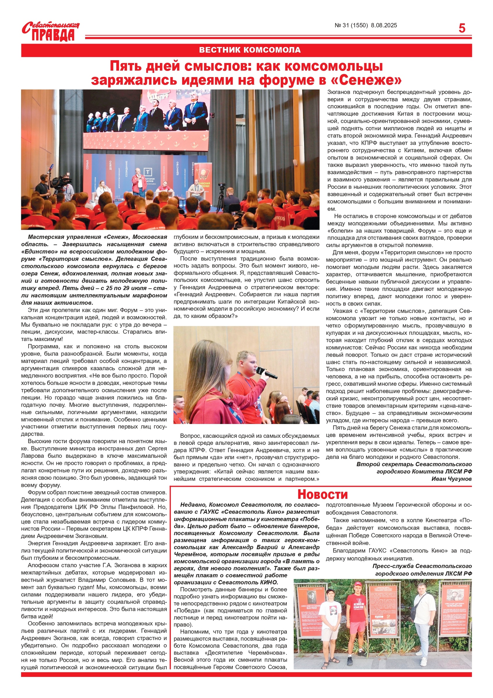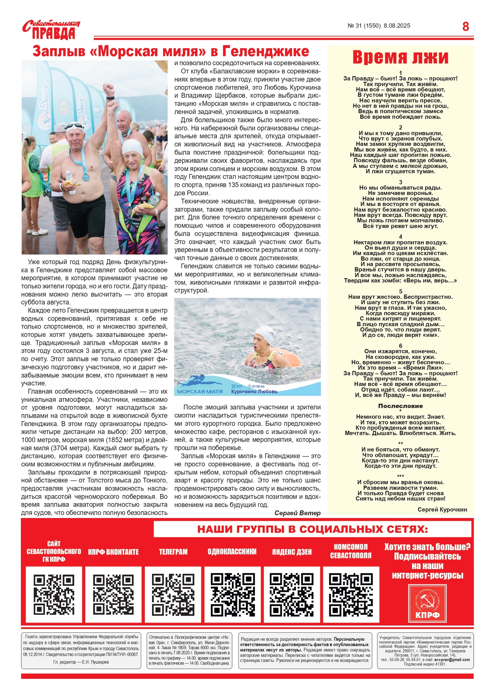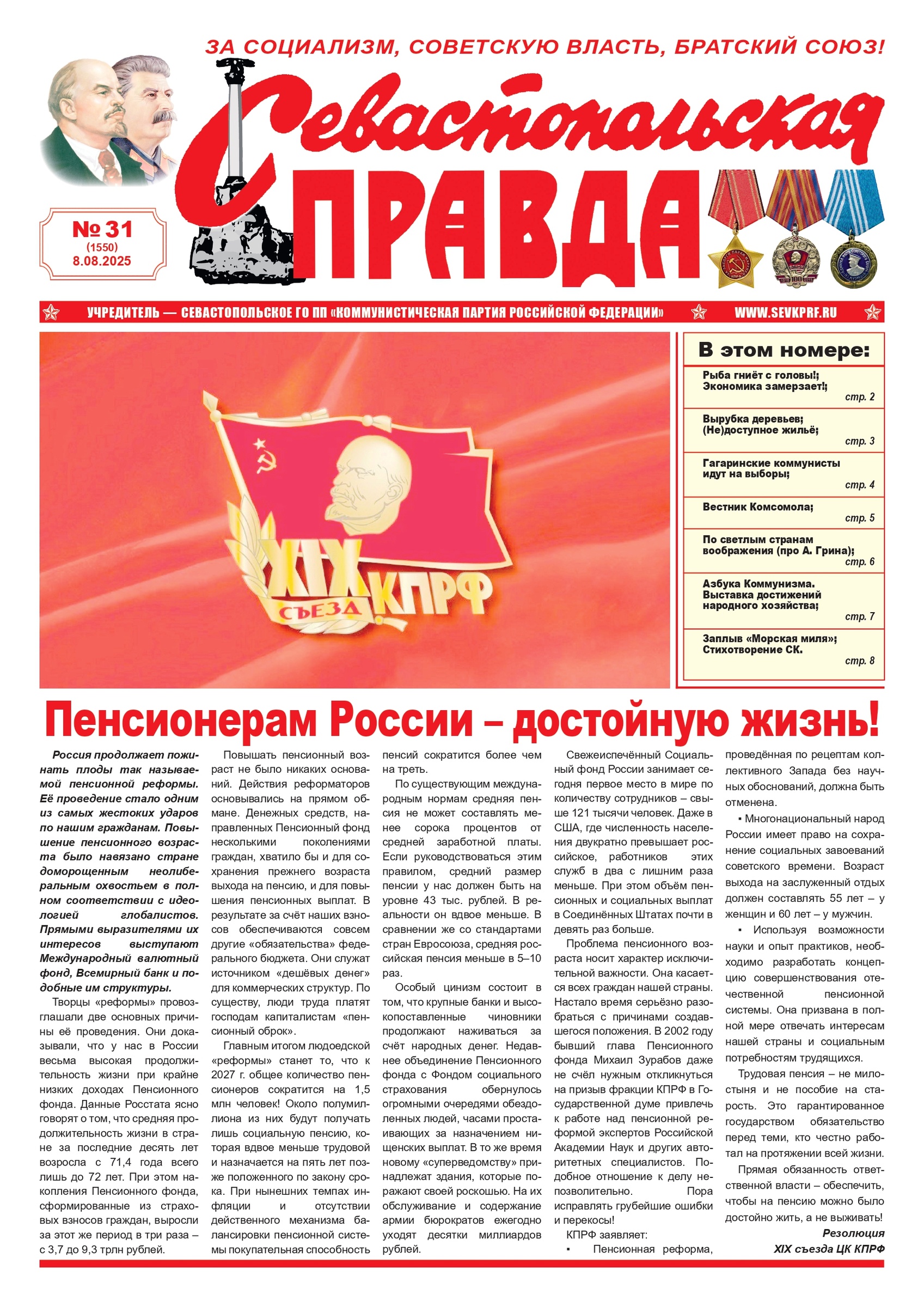 Газета “Севастопольская правда” № 31 от 8 августа 2025 г., доступна в электронном виде