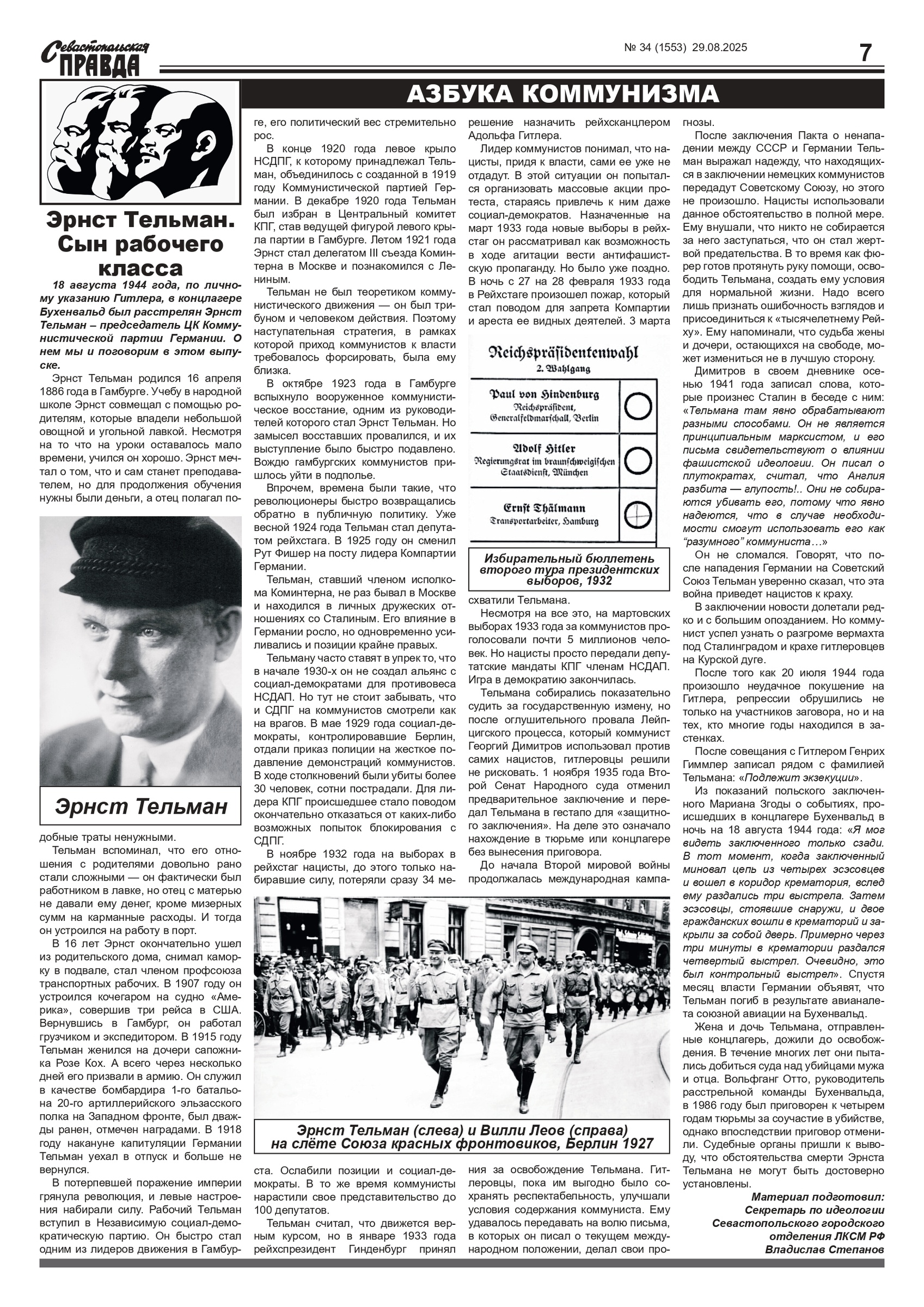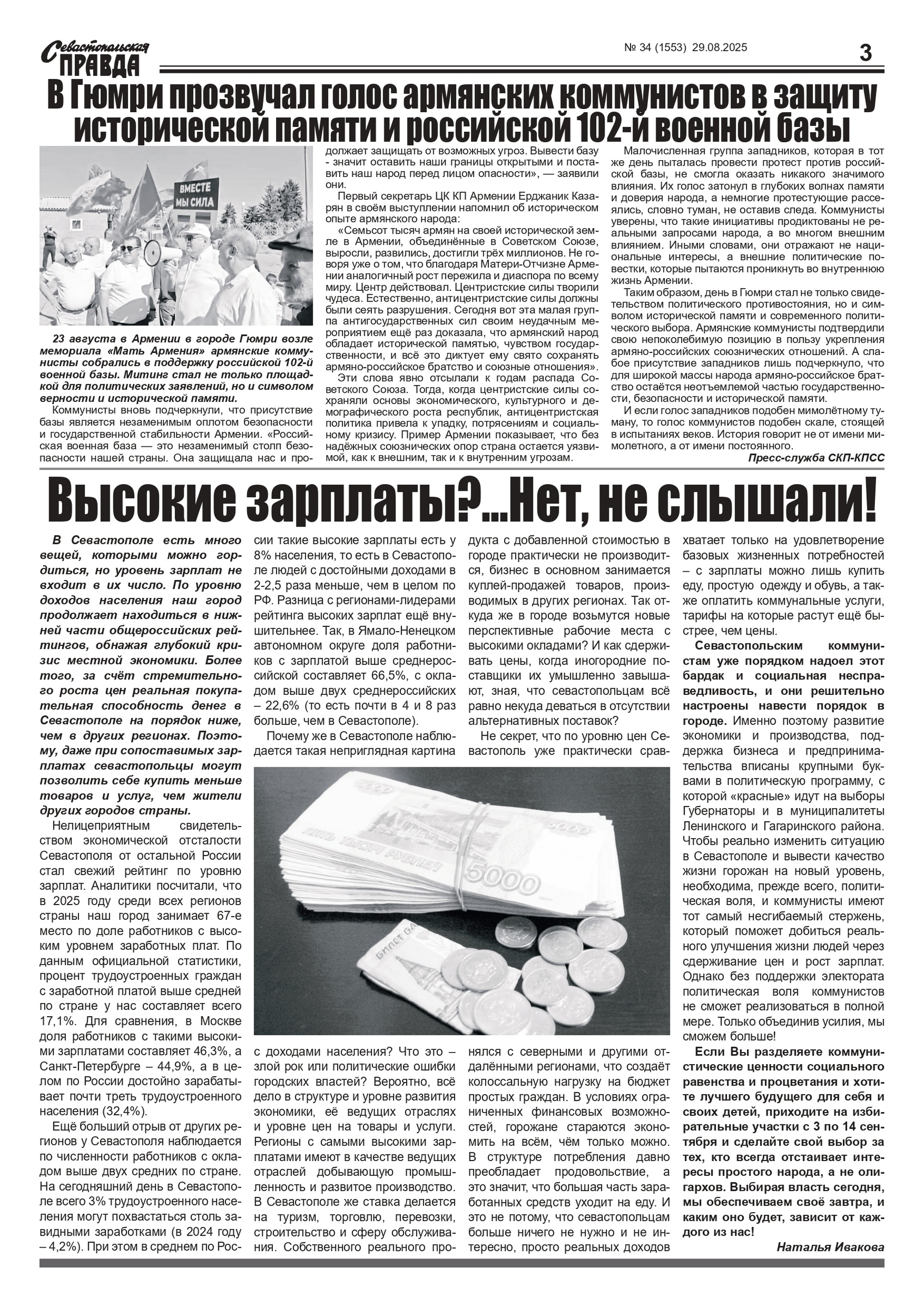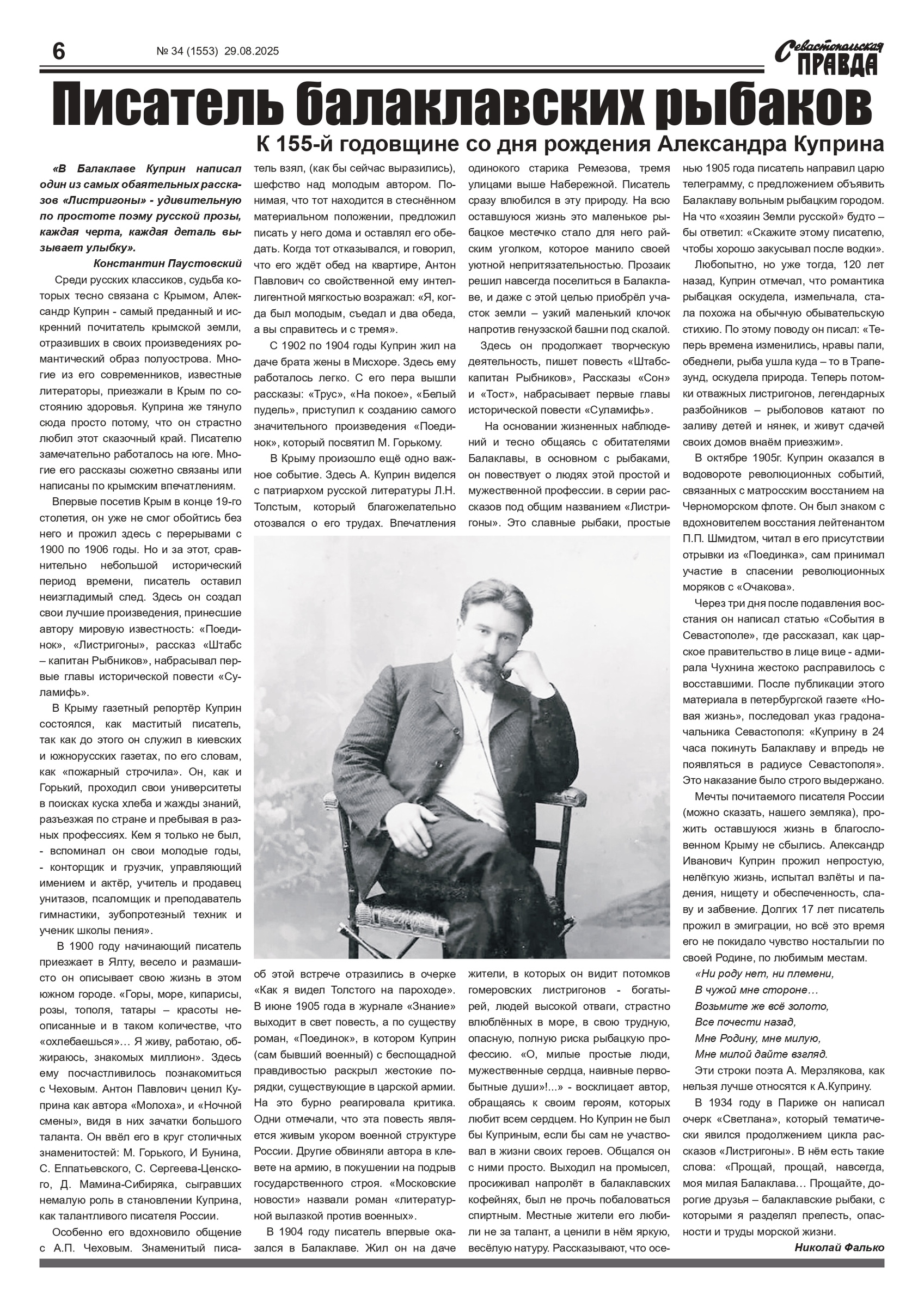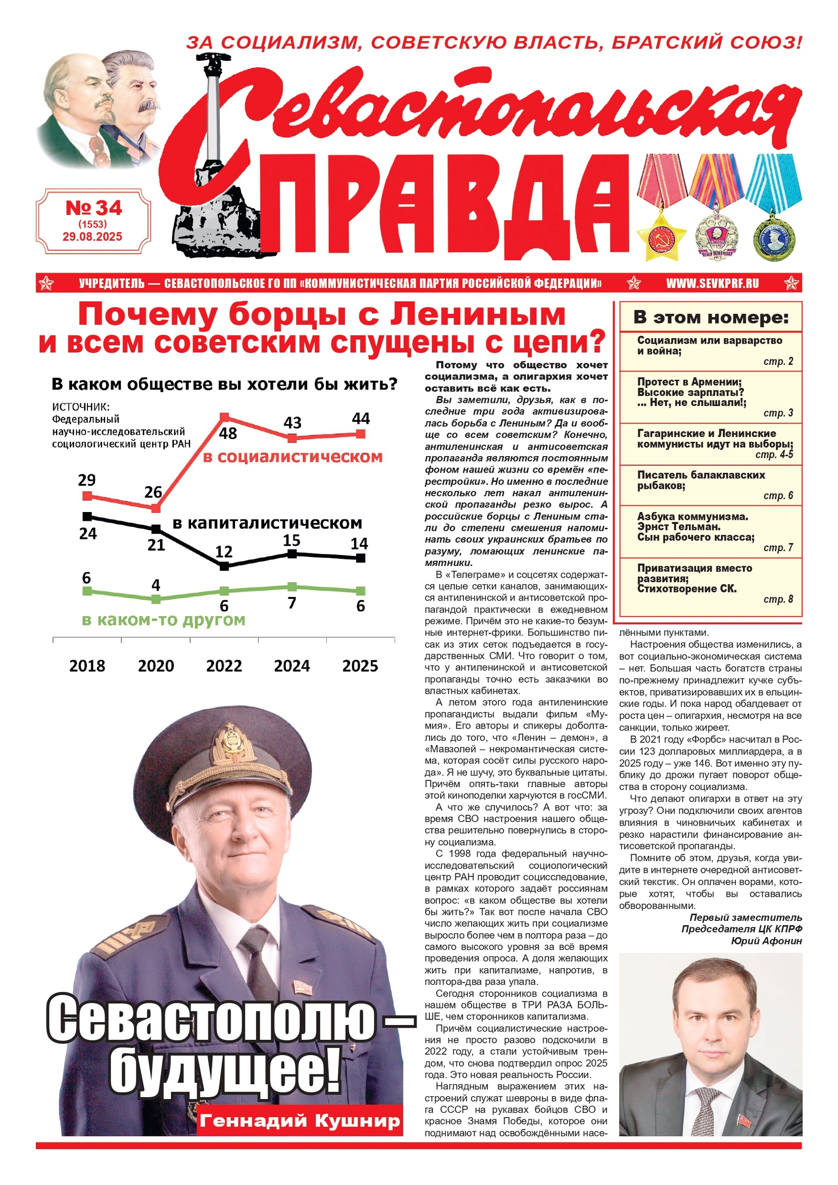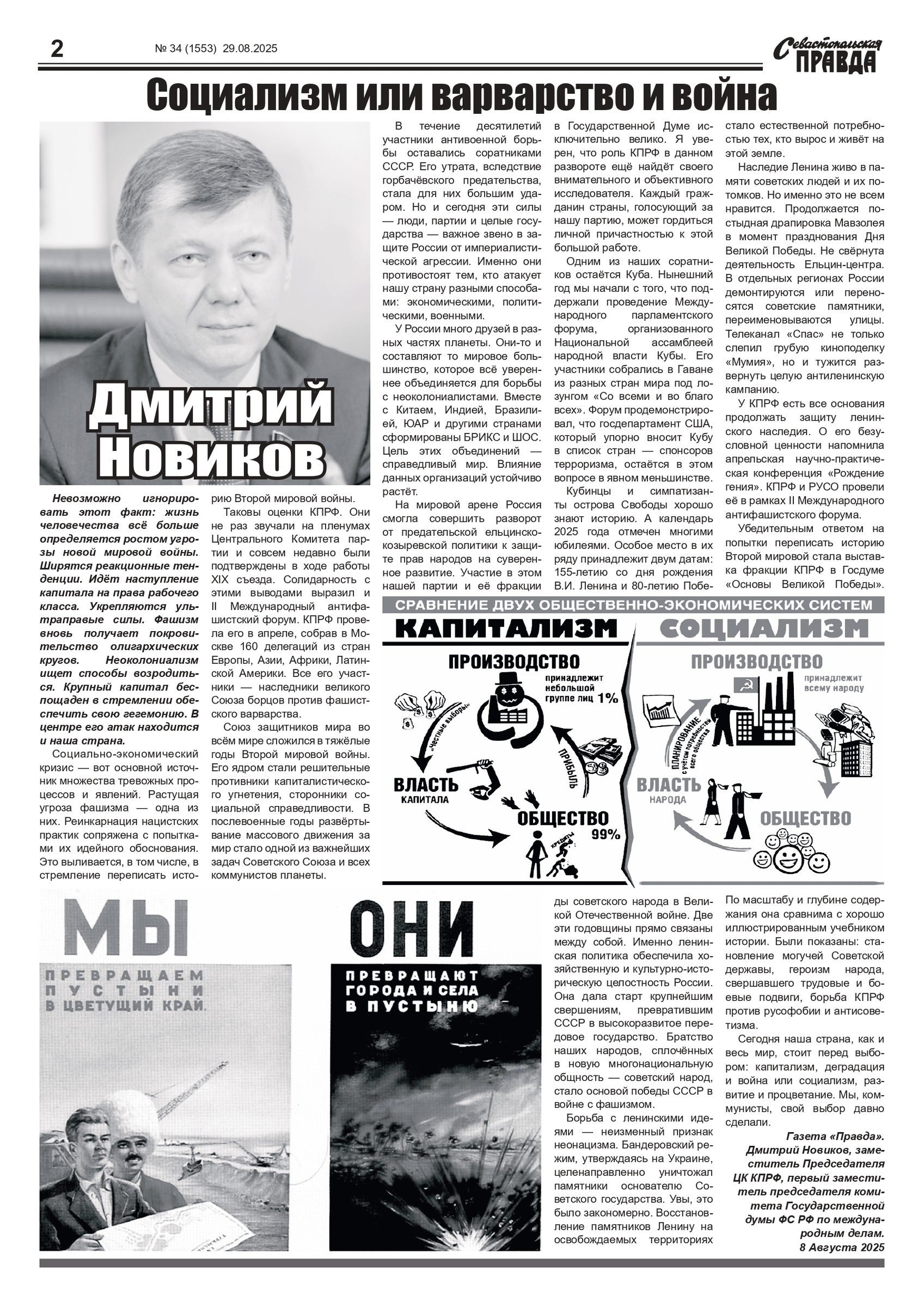 Газета “Севастопольская правда” № 34 от 29 августа 2025 г., доступна в электронном виде