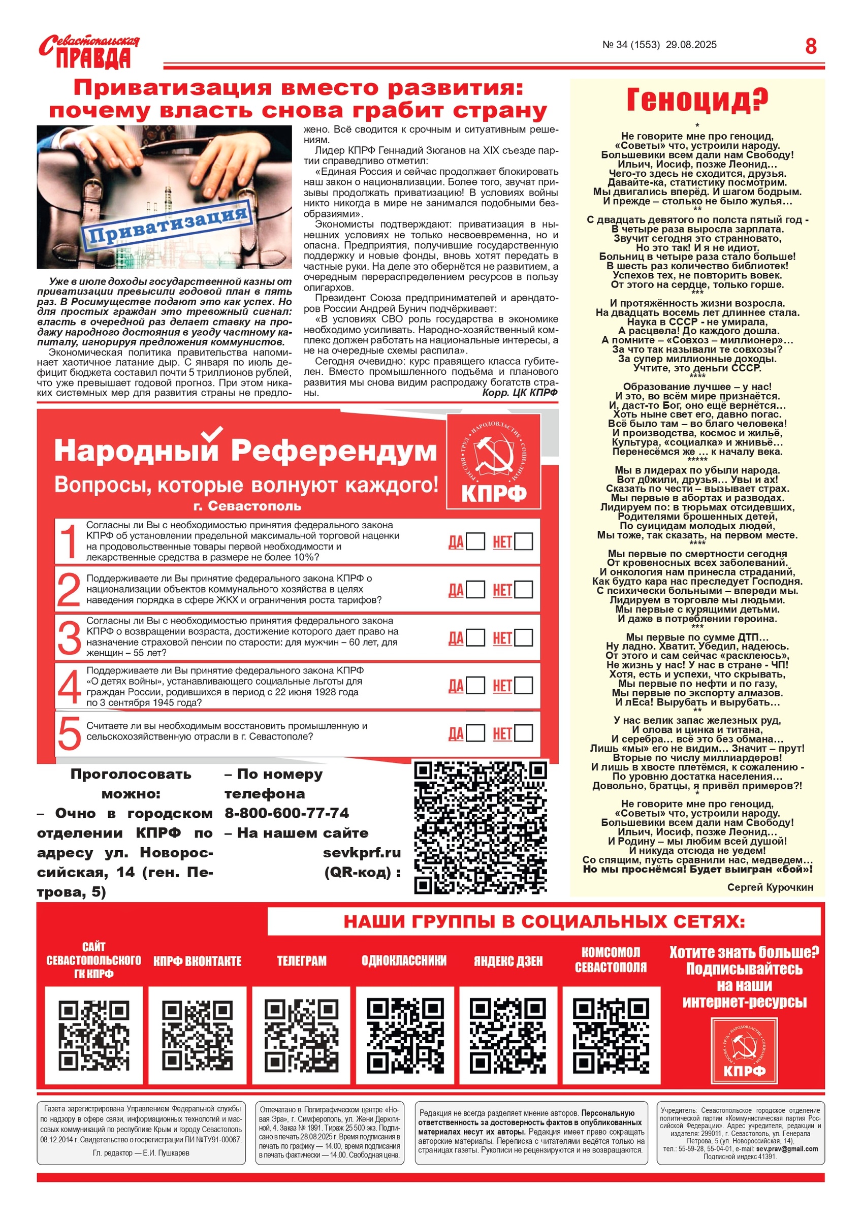 Печатную версию газеты можно получить в севастопольском Горкоме КПРФ по адресу ул. Новороссийская, 14.