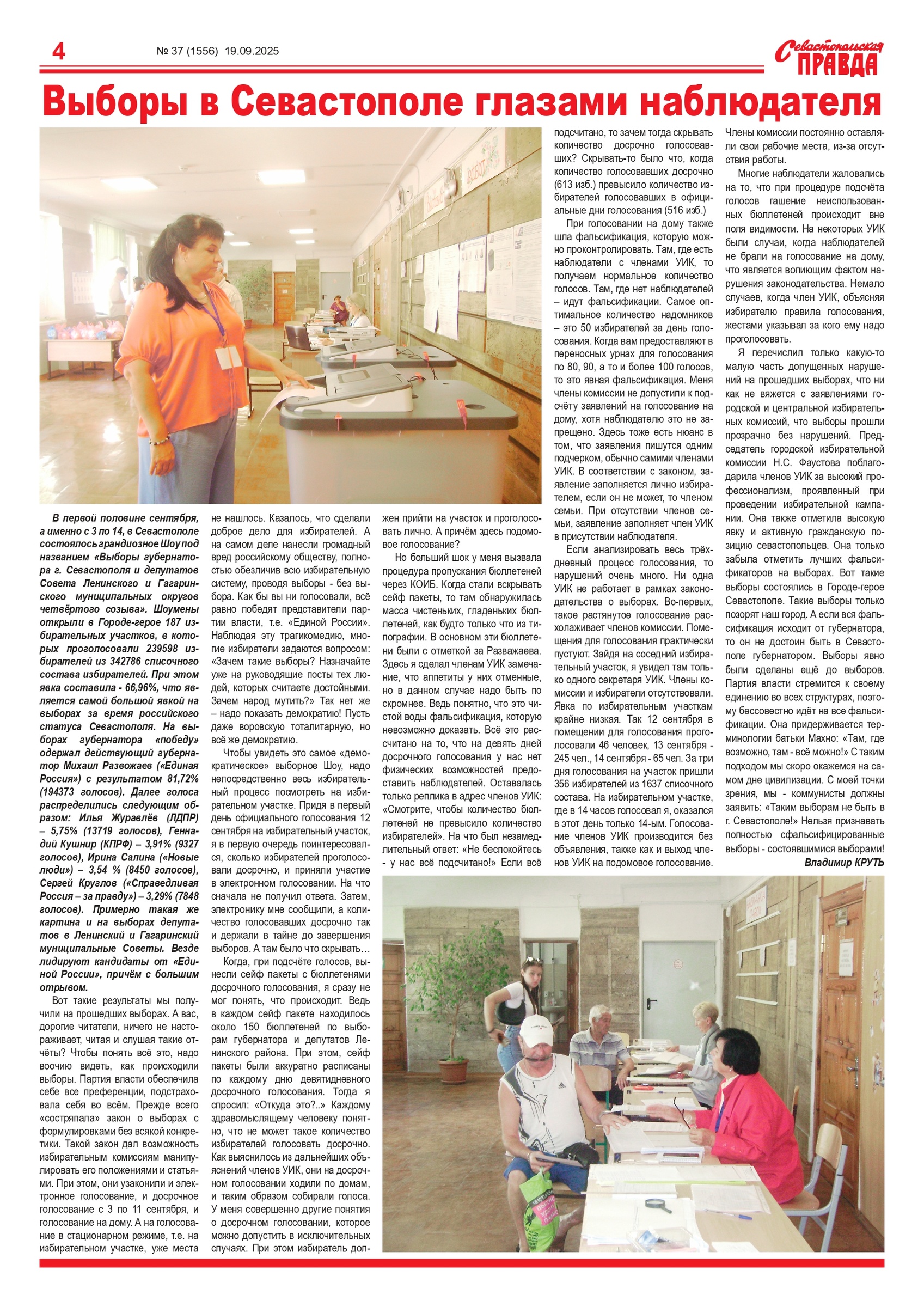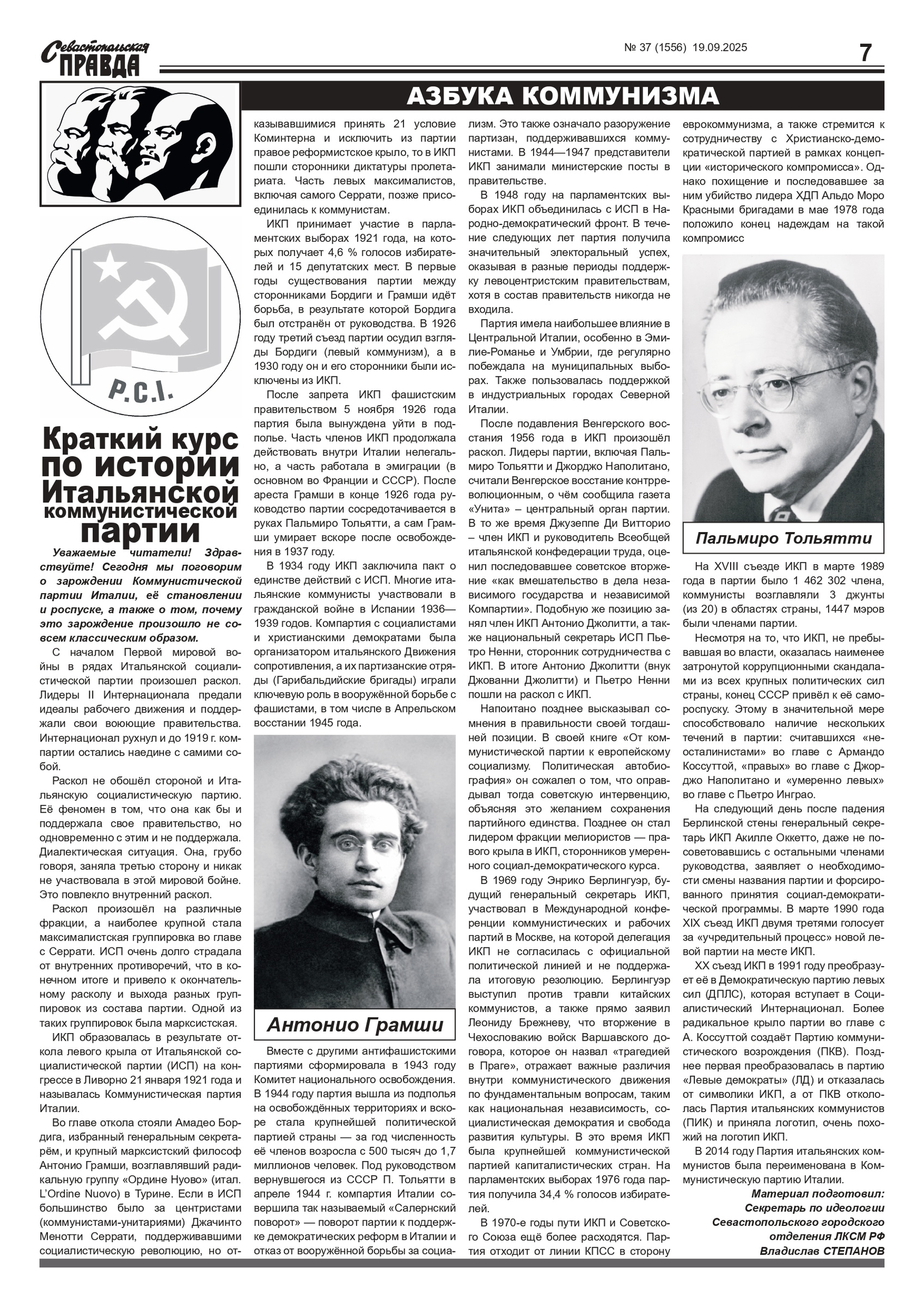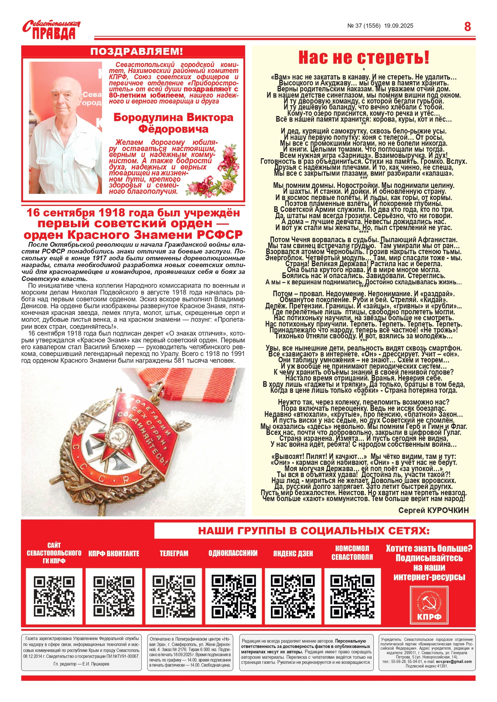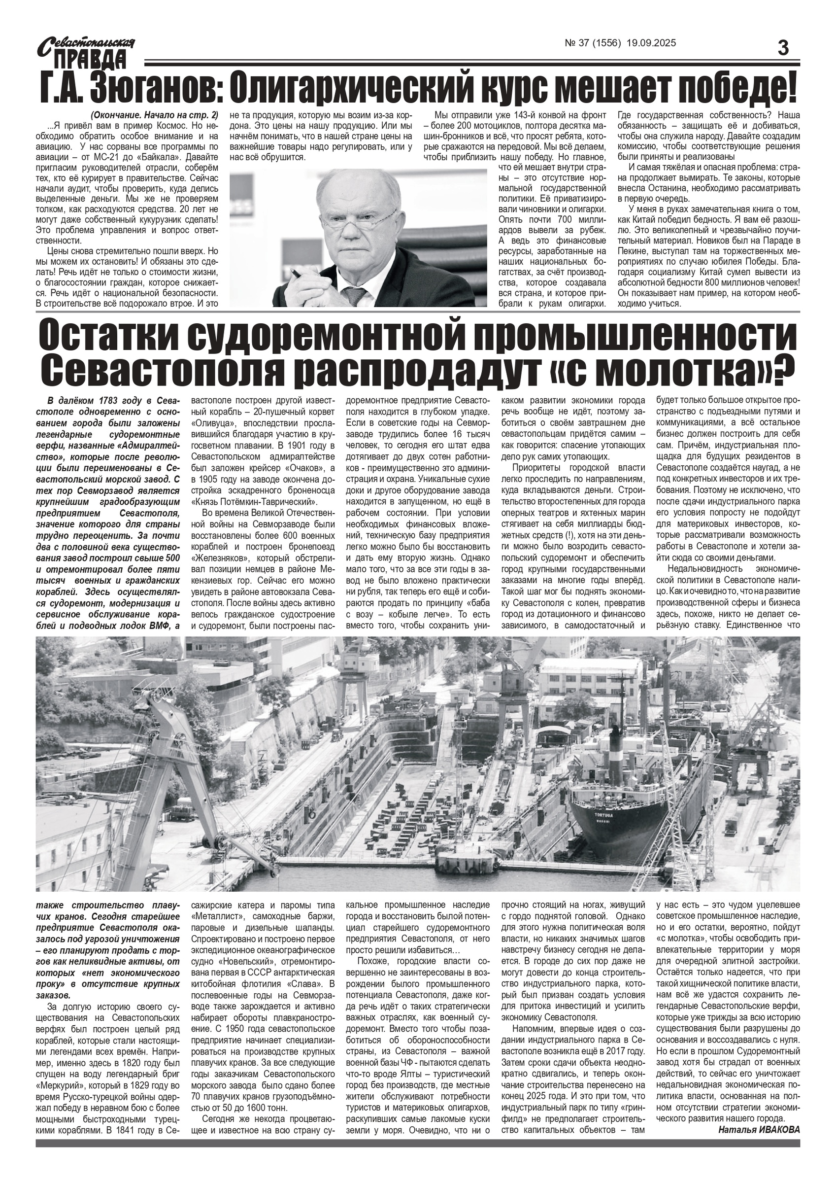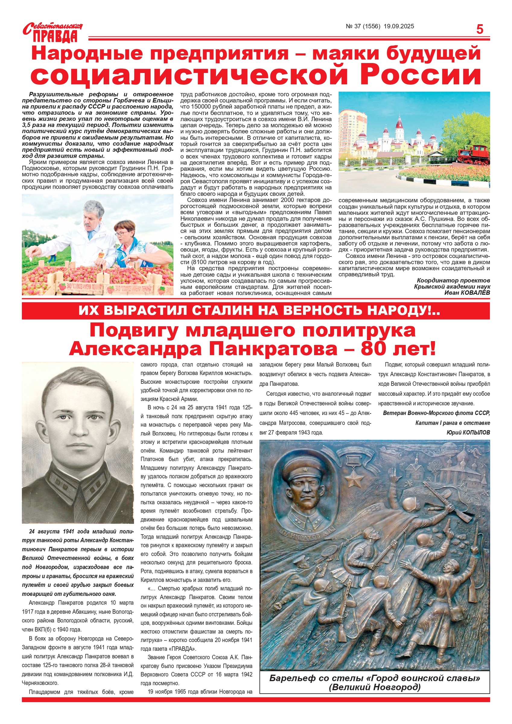 Газета “Севастопольская правда” № 37 от 19 сентября 2025 г., доступна в электронном виде
