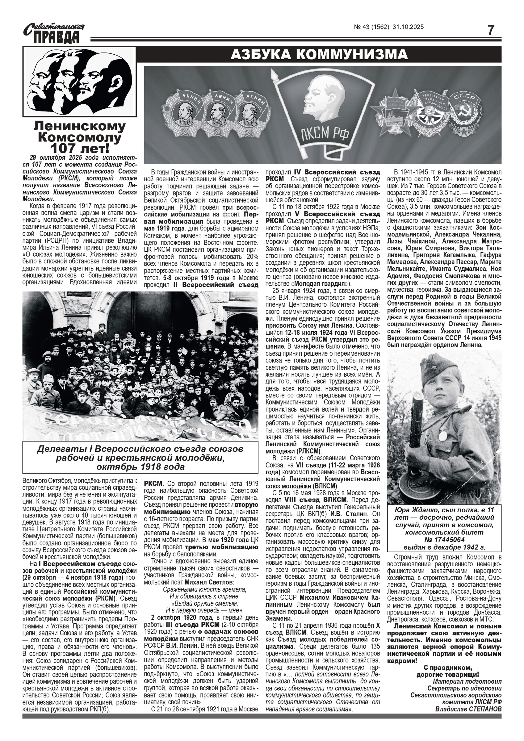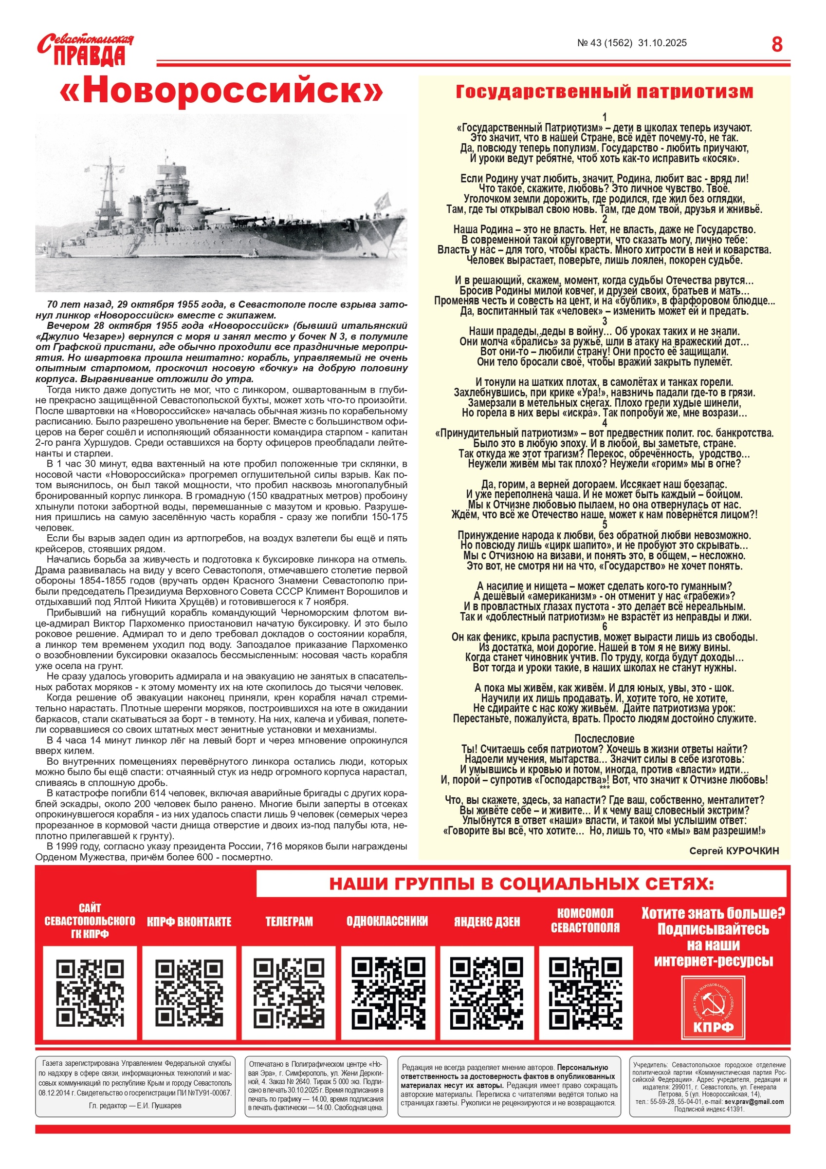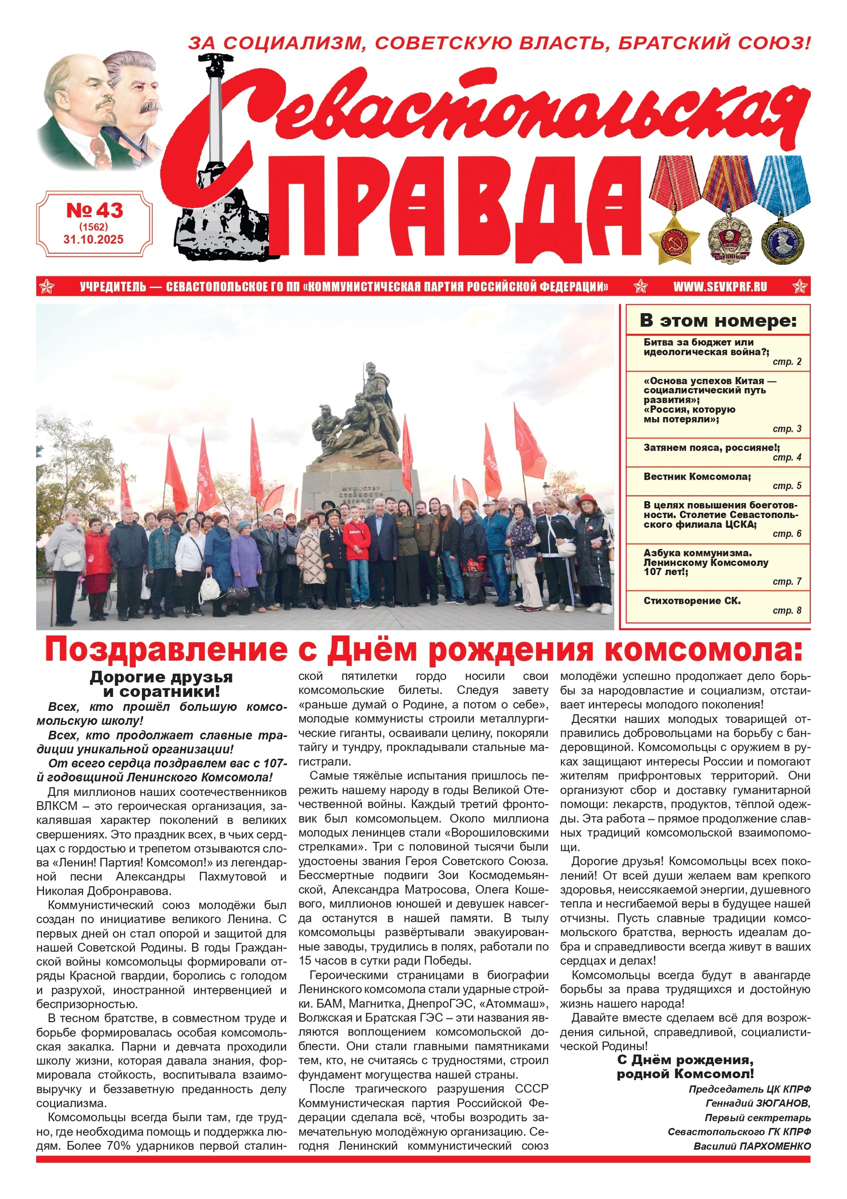 Газета “Севастопольская правда” № 43 от 31 октября 2025 г., доступна в электронном виде