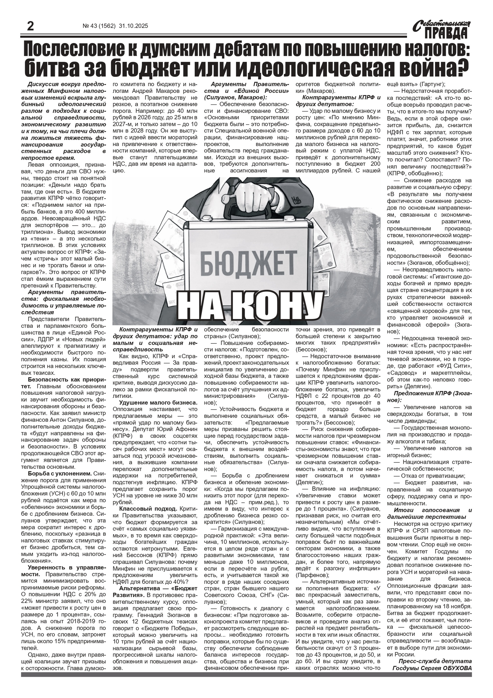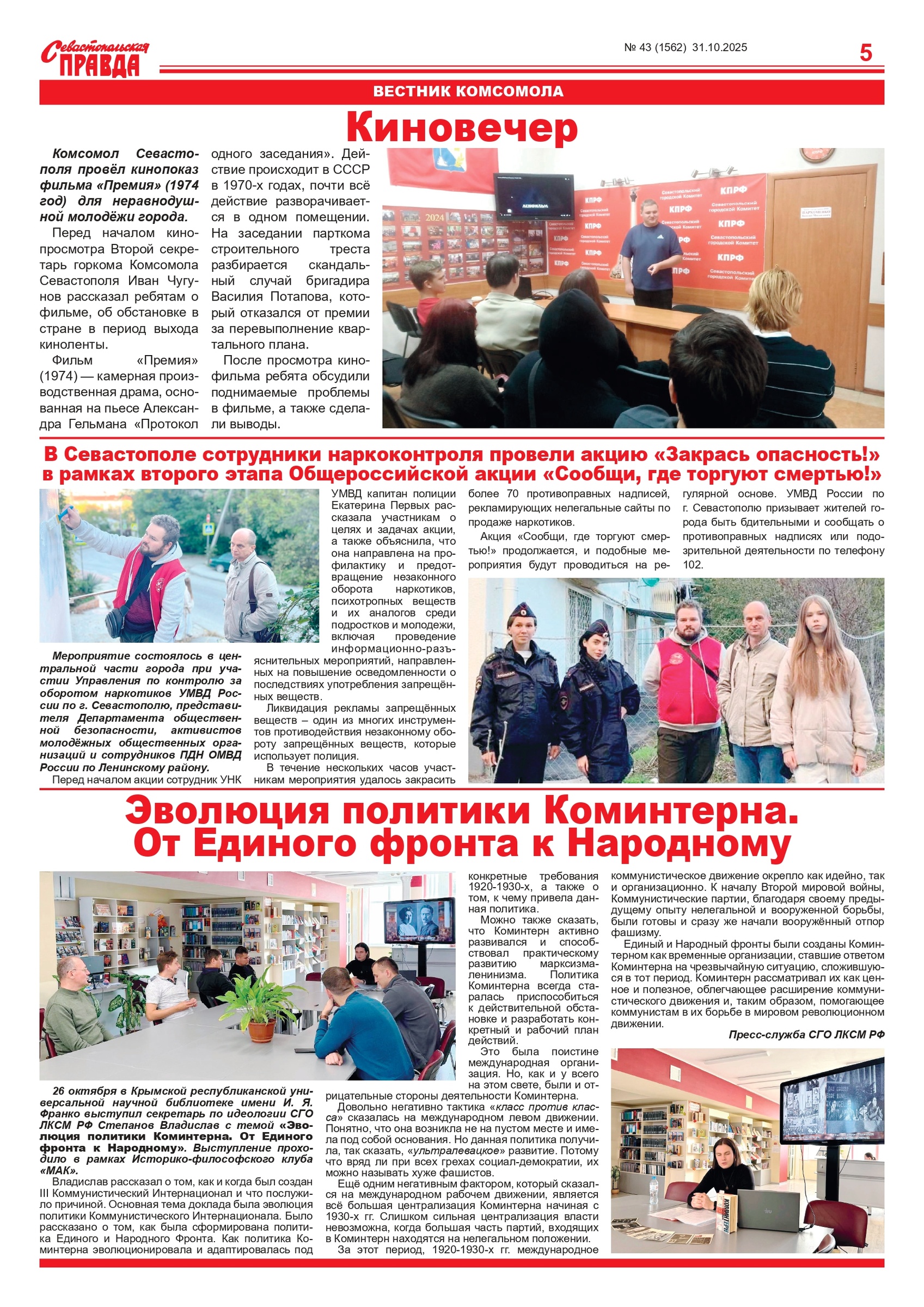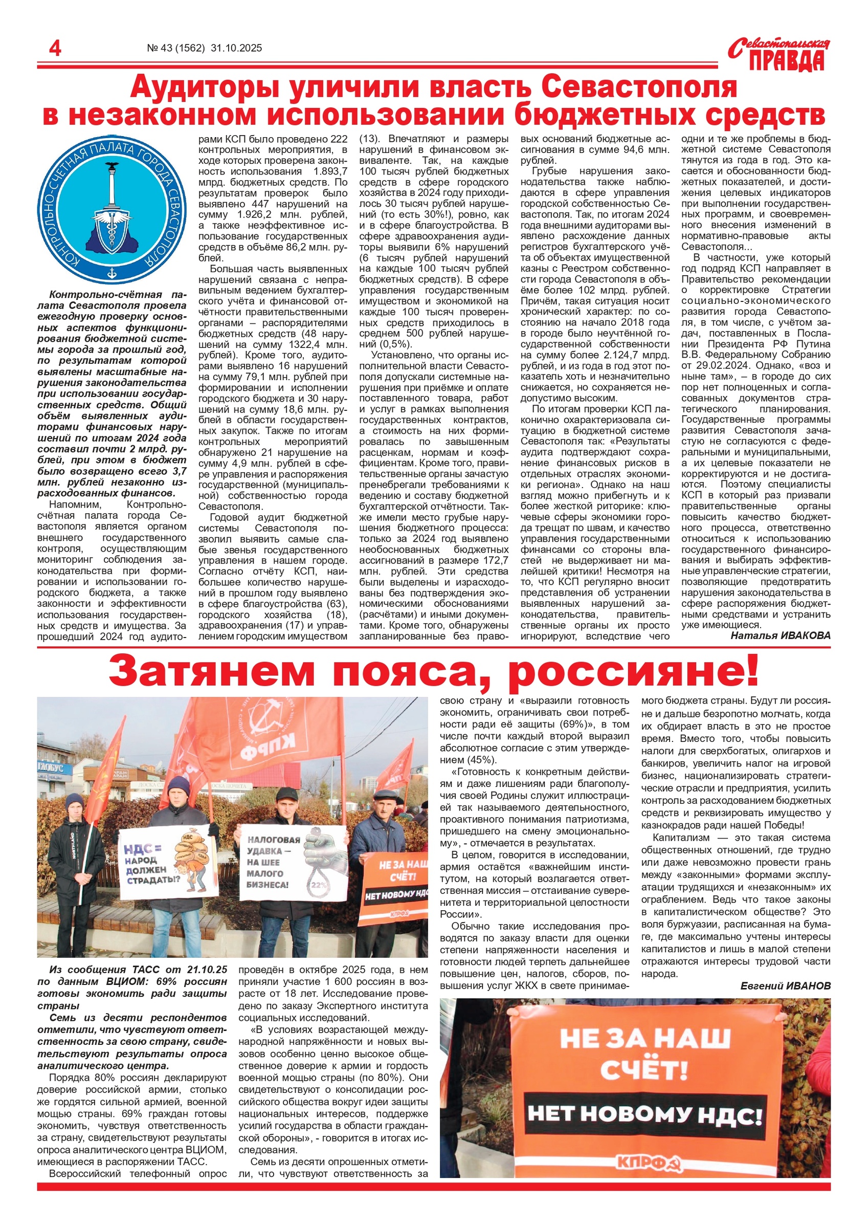 Газета “Севастопольская правда” № 43 от 31 октября 2025 г., доступна в электронном виде